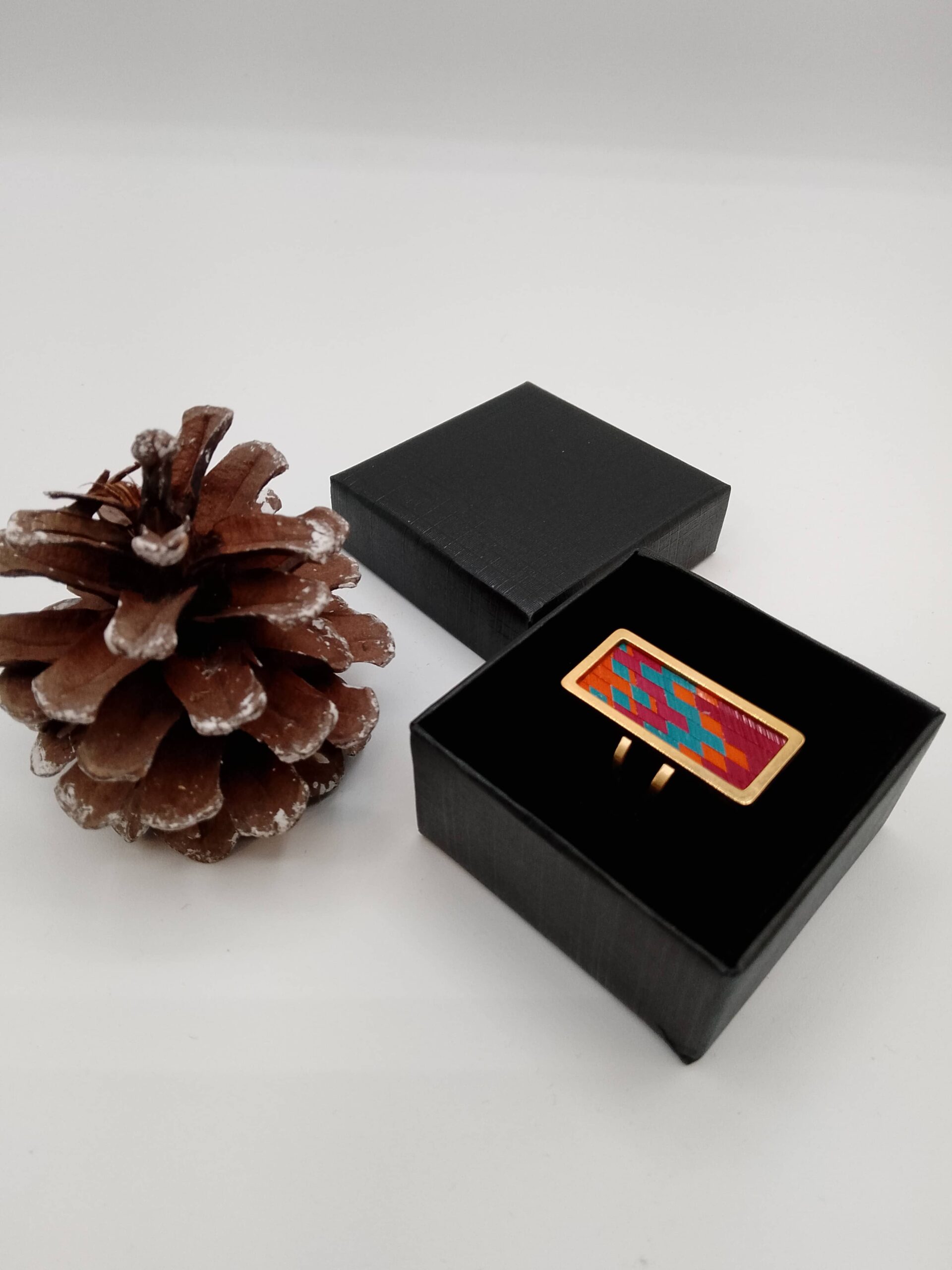 Bague en marqueterie de paille et acier inoxydable 2,5 x 1 cm réglable.