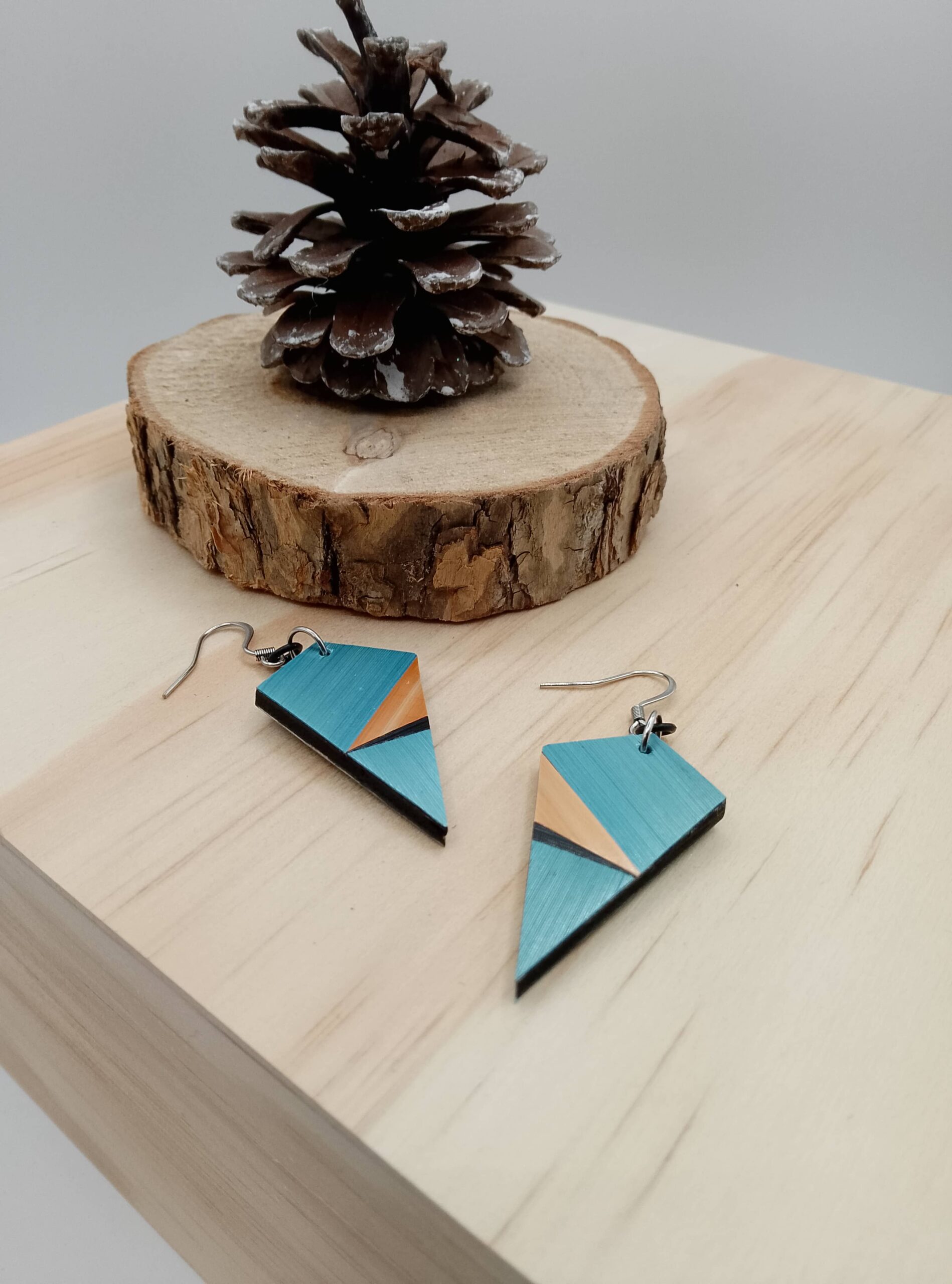 Boucles d’oreilles en marqueterie de paille 3,5 x 2 cm.