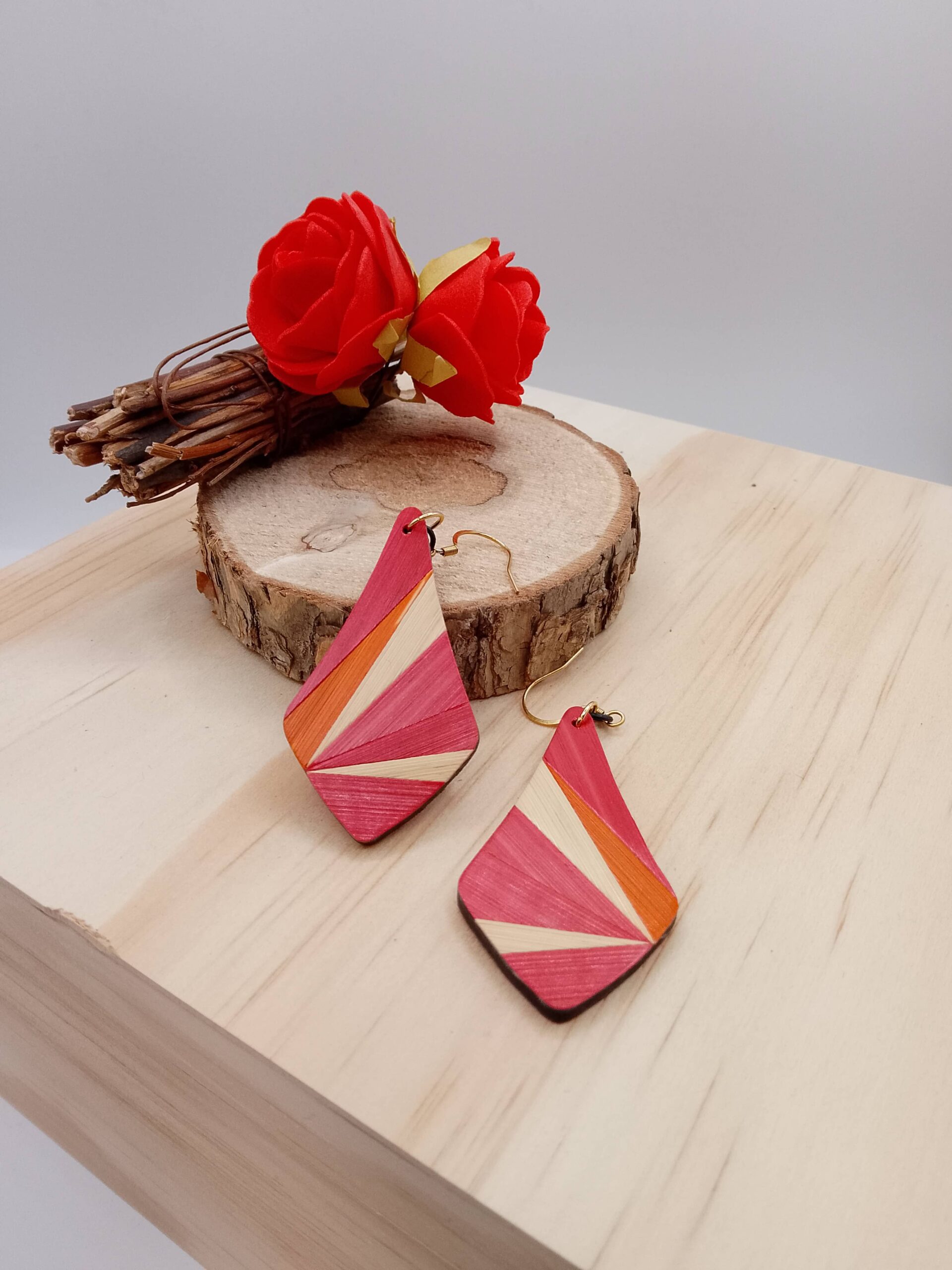 Boucles d’oreilles en marqueterie de paille 5,5 x 3 cm.