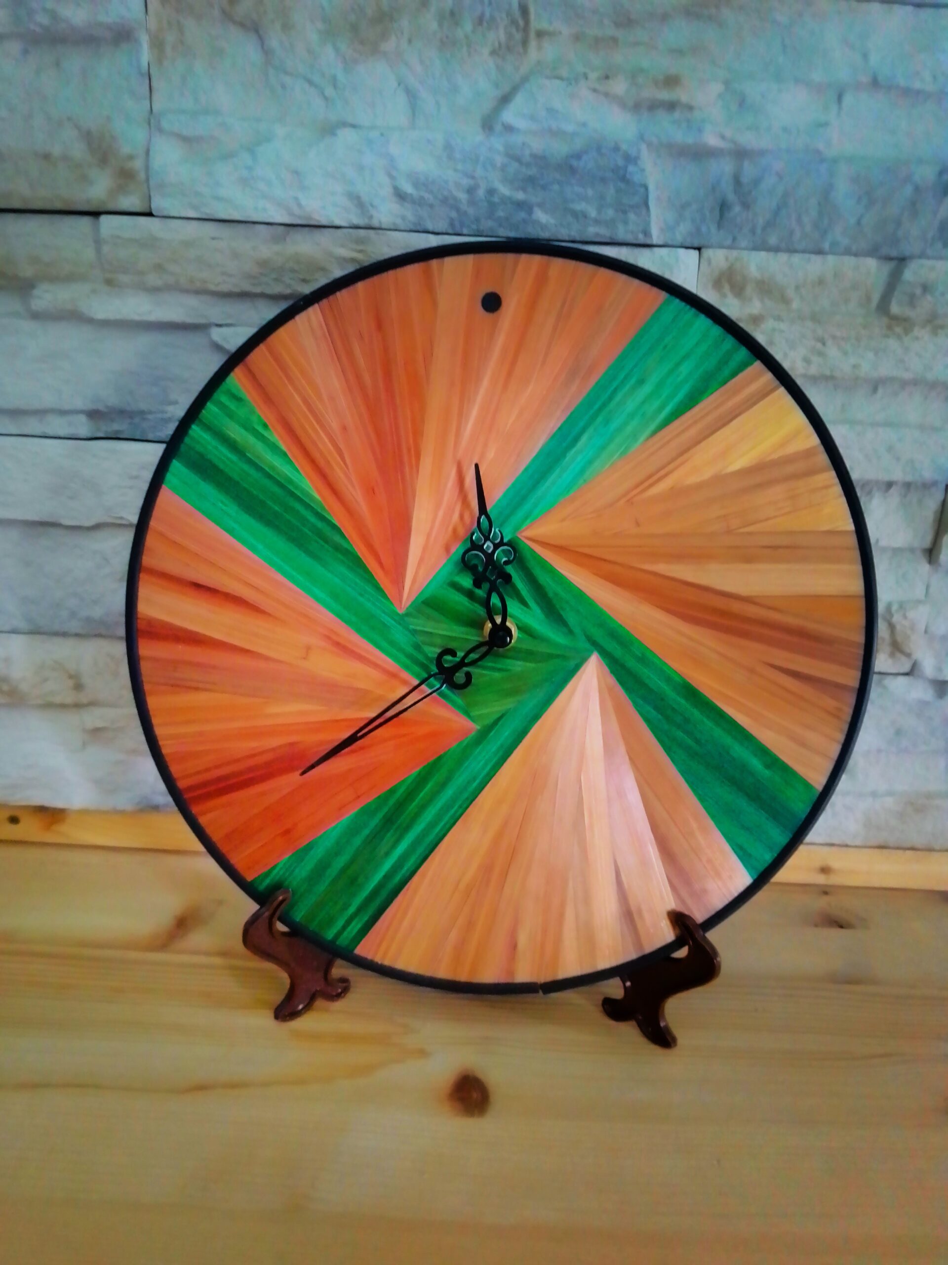 Horloge en marqueterie de paille 30 cm de diamètre.