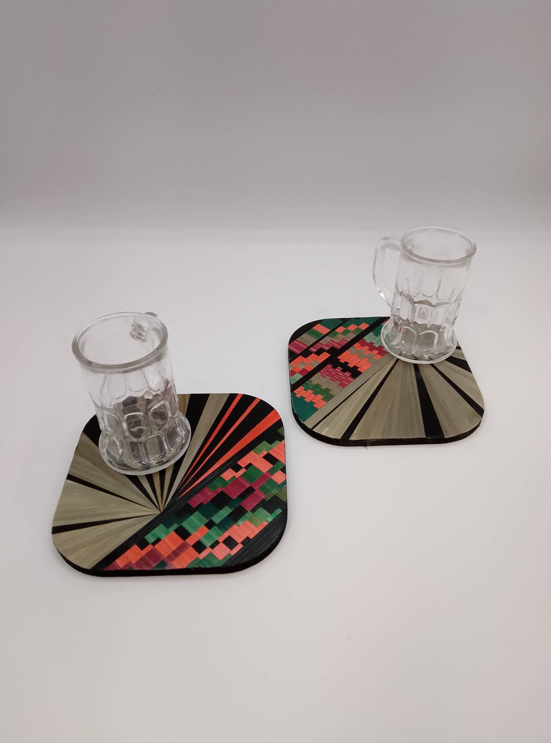 Dessous de verre en marqueterie de paille 10 x 10 cm.
