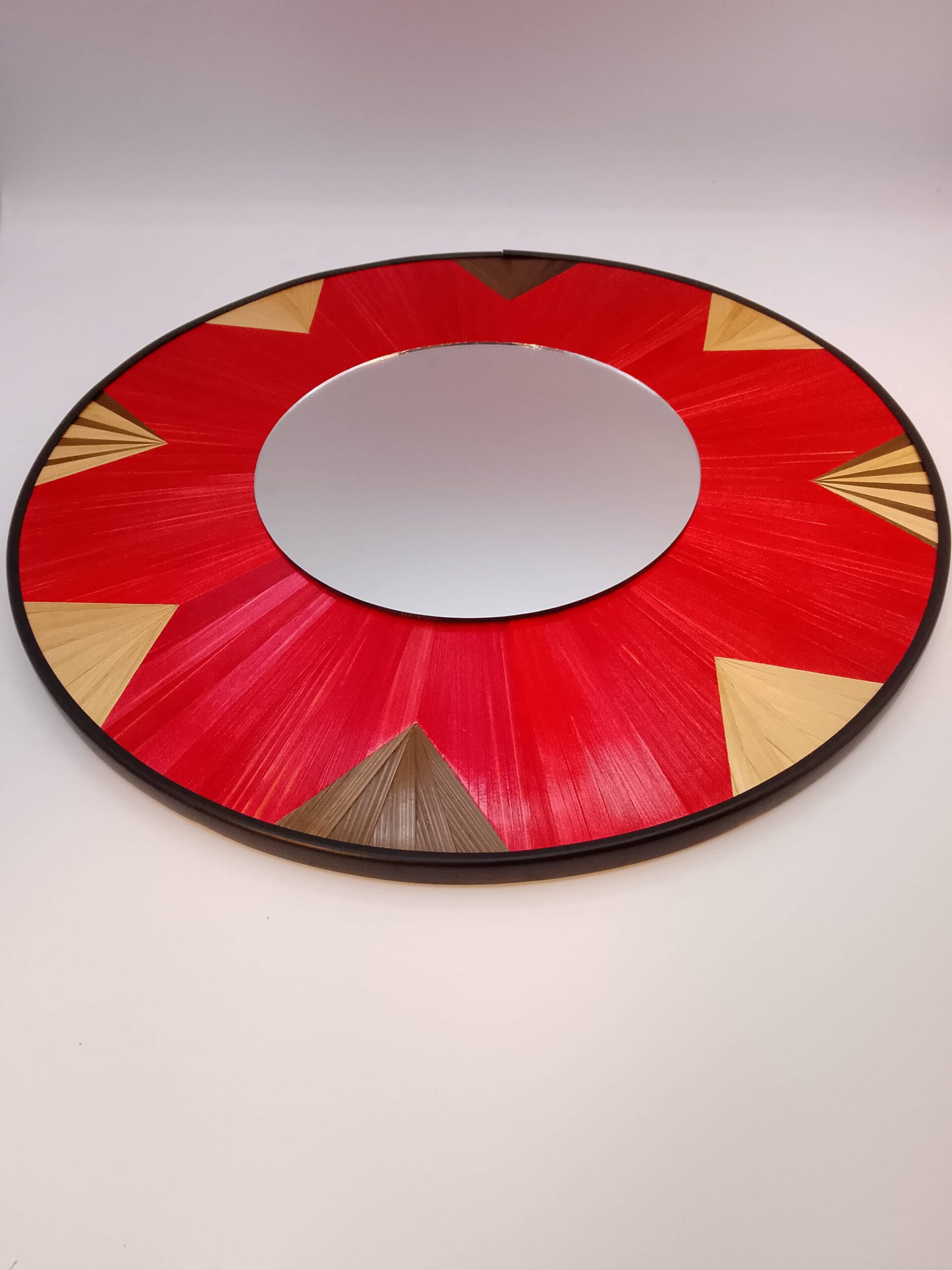 Miroir en marqueterie de paille 30 cm de diamètre.