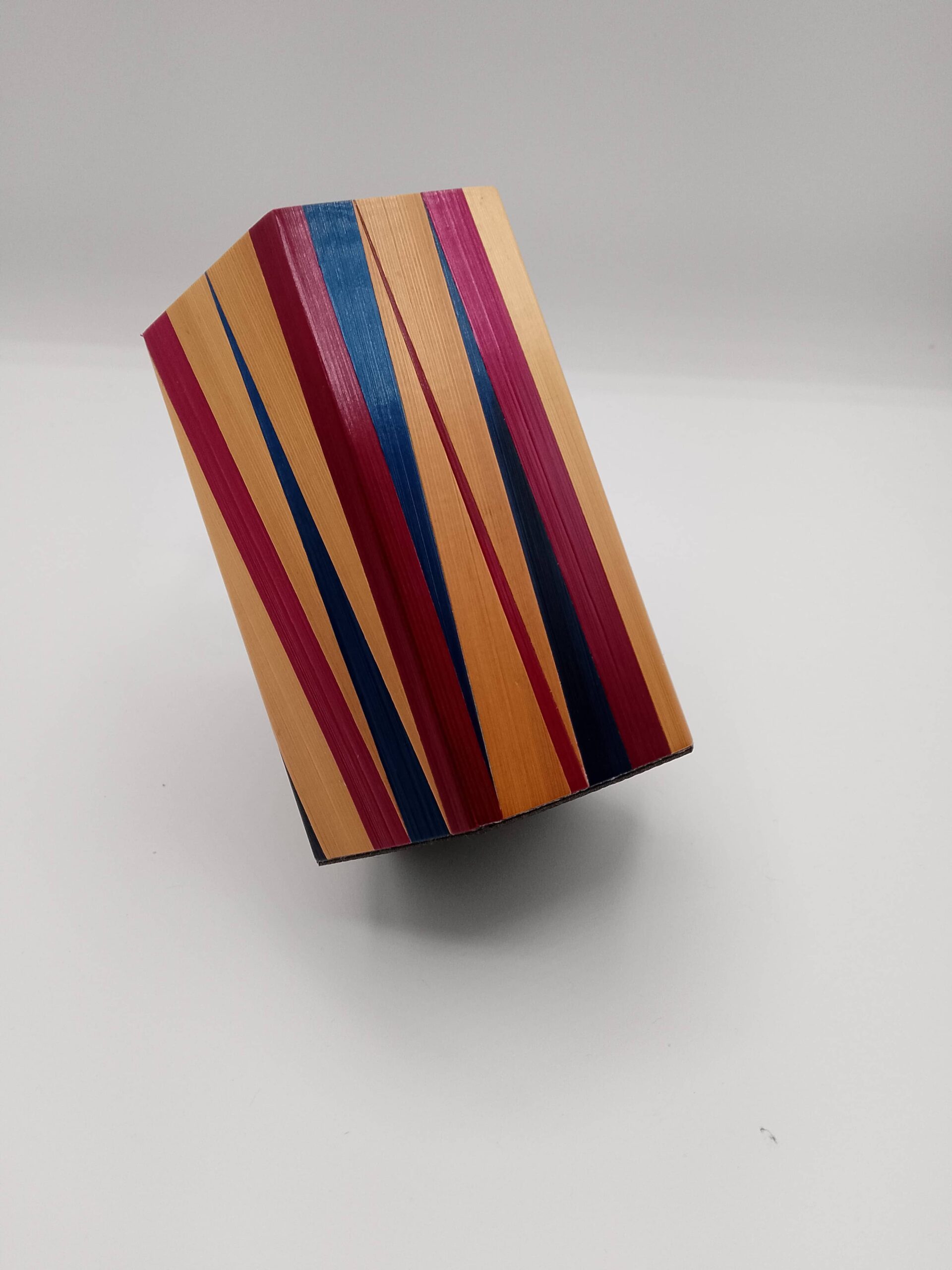 Pot à crayons en marqueterie de paille de forme hexagonale 10 x 7 cm.